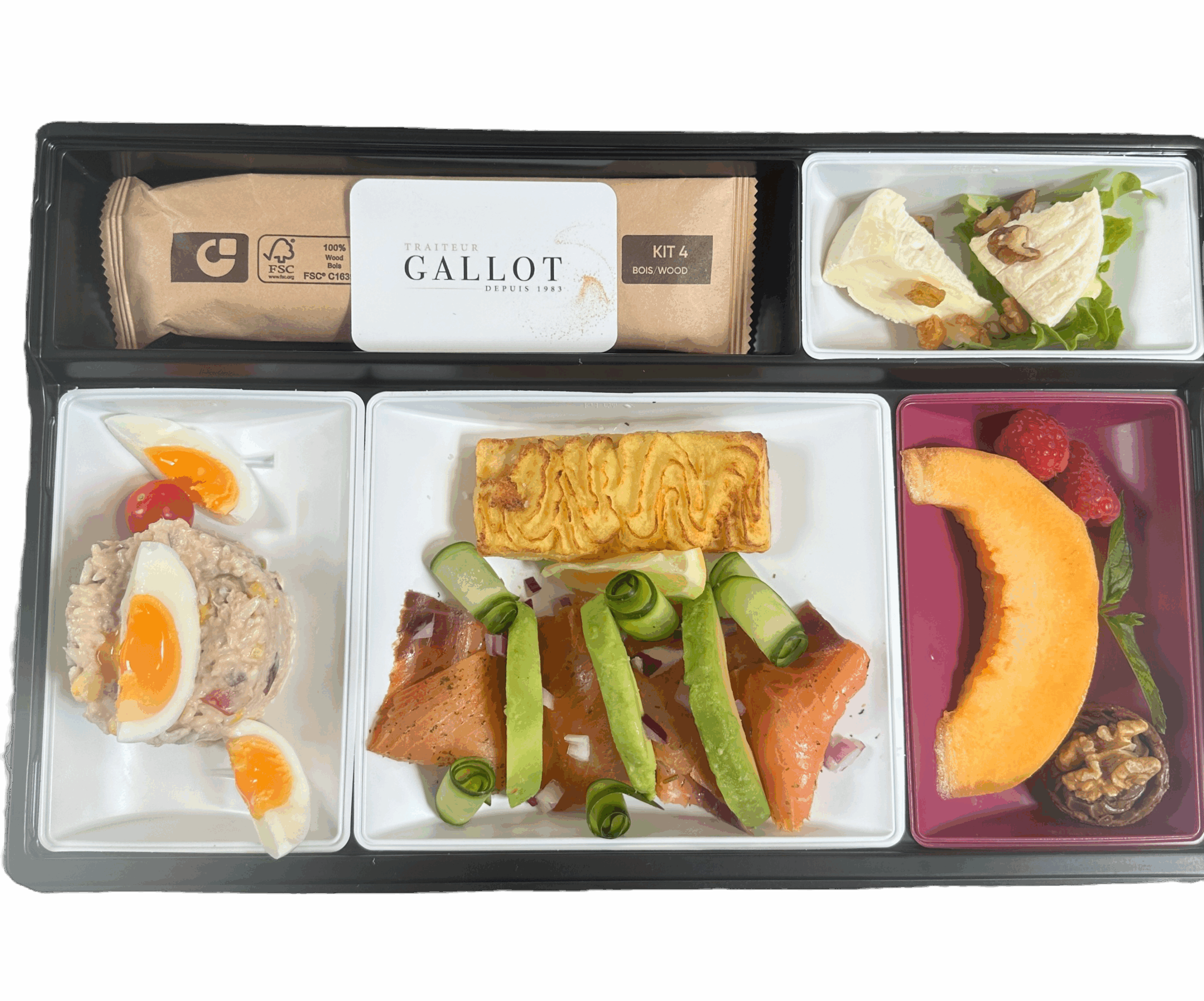 Notre plateau « Gourmet », élaboré avec des produits frais et de saison, se distingue par son excellent rapport qualité-prix. La composition exacte demeure confidentielle, mais pour répondre à différents régimes alimentaires, nous proposons trois options : poisson, viande ou végétarien (sans viande ni poisson).