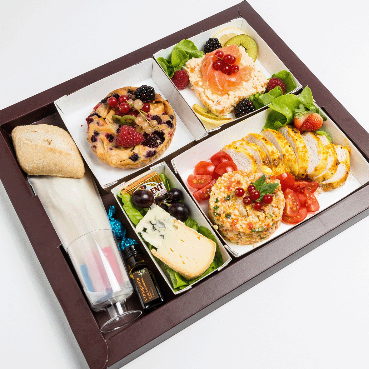 -Tous nos plateaux sont accompagnés d’un pain au levain de 60gr et d’une bouteille d’eau de 50cl.